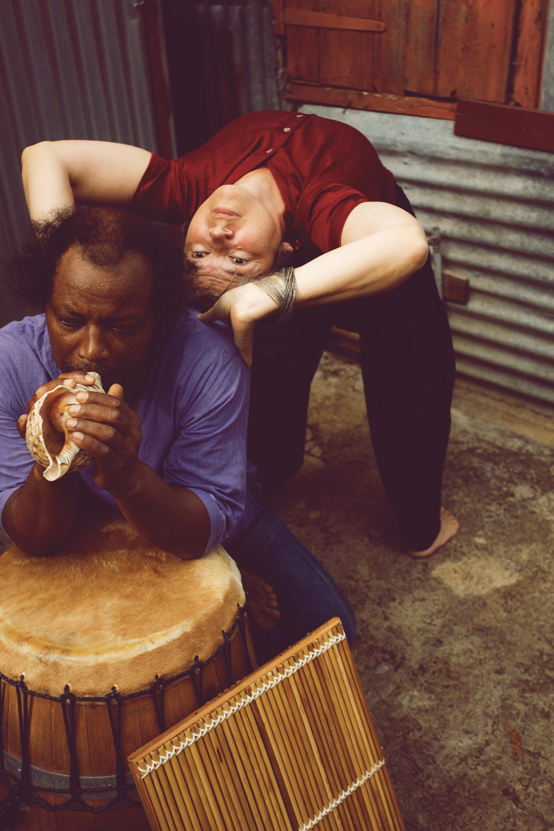 Ce gardien du rythme et du groove Tramay nous réserve bien des surprises pour ce nouveau spectacle où il déploie ses talents pour le mouvement. Davida entrainé des générations de moringueurs et danse le maloya avec le vrai swing créole. Il pratique le yoga depuis de nombreuses années.